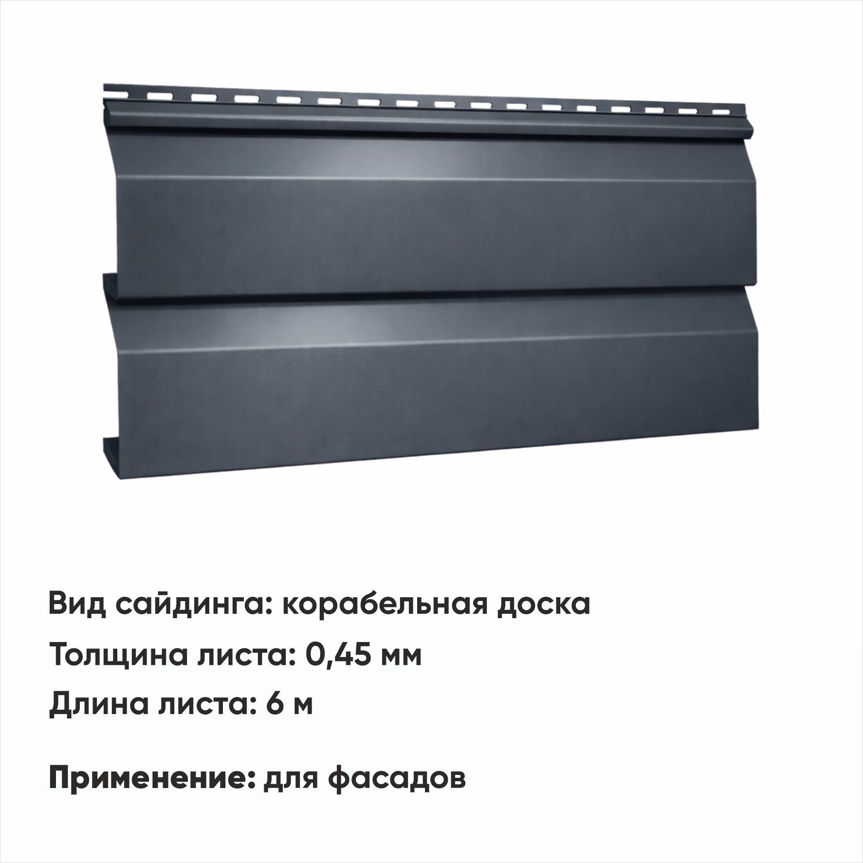 М/сайдинг Корабельная доска (Н-0,45) 6 м РАЛ 7024 Графитовый серый